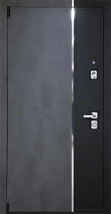 Стальная дверь с отделкой двухцветными панелями МДФ с хромированной вертикальной полоской КД-1450