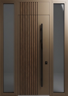 Входная группа с терморазрывом, стеклами по бокам, бугельной ручкой, металлорейками и коричневой покраской — это идеальный вариант для тех, кто ценит сочетание классики и современных материалов. Панели из МДФ доступны в широкой палитре цветов и текстур, включая имитацию ценных пород древесины. Позволяют подобрать модель под любой стиль интерьера — от классики до минимализма. Дизайн-проект делает дверь не только функциональной, но и визуально привлекательной.
